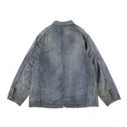 ウォッチポケットや、ポケットの配置、40年代以前特有のカバーオールの型紙、縫製仕様も当時の意匠を踏襲し、時代背景まで映し出す仕上がりとなっている。