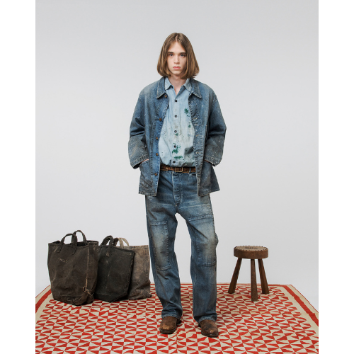 重厚な質感と経年で深まったかの様な加工によるリアルな表情は、当時の作業着が持つ機能美そのもの。