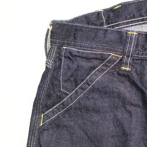 また、最大の特徴であるダブルニーの上はポケット仕様となっております。バックスタイルはハの時型ポケットでセンターにハンマーループが付きます。