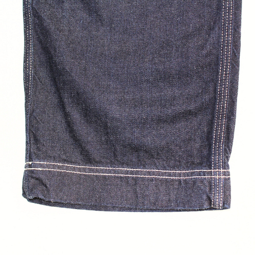 縫製は2本針の綿糸仕上げ、裾の処理は三つ折りで二本のステッチ仕様です。