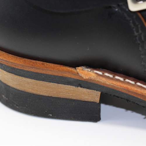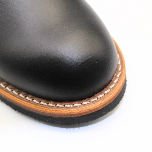 アッパーはBLACK "KLONDIKE" LEATHER (ブラック"クロンダイク"レザー)を使用。経年変化を楽しめる「茶芯」モデルです。