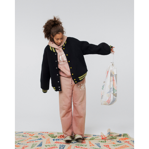 セットアップのスタジャンやクルースウェットとは異なるアプローチで、同じスクールスピリットを表現。BOW WOWらしい色遊びとリアルな経年表現が光る一着。