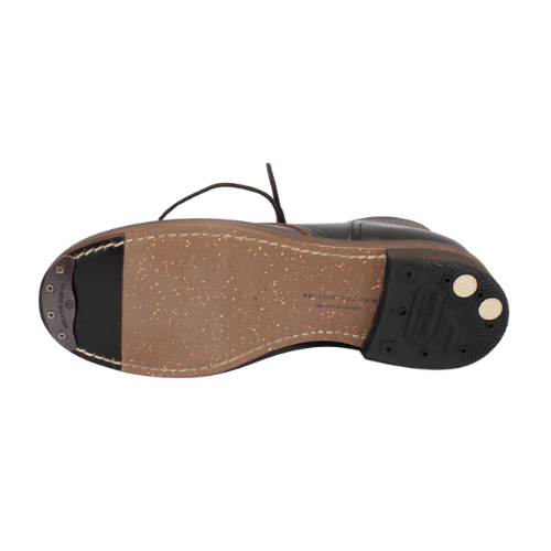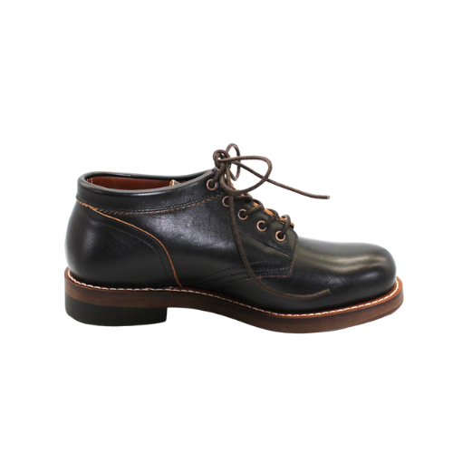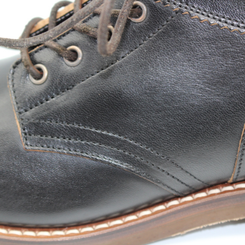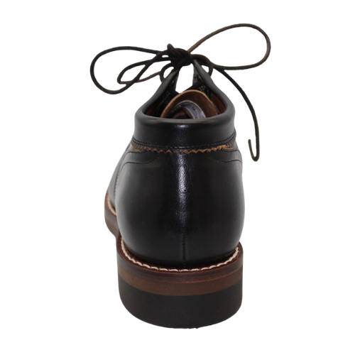 履き口のレザー・パイピングを独特の手法で縫い付け、くるぶしへの当たりを柔らかにしています。
