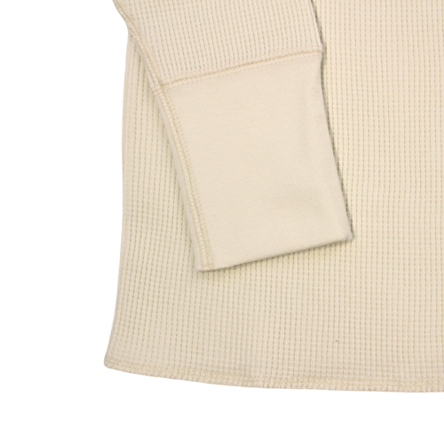 ワッフル状の網目のサーマル生地は伸縮性と耐久性がございます。