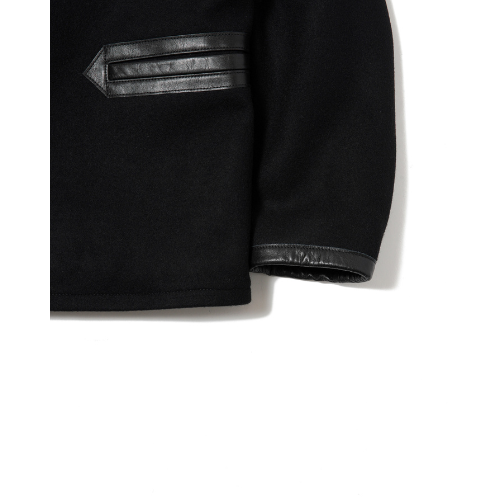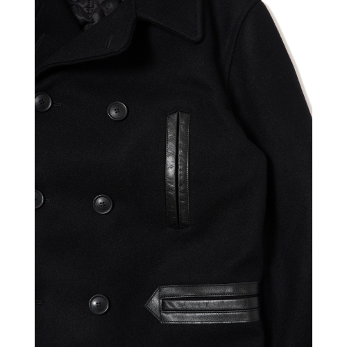 ウール/ナイロン混紡の高密度メルトン生地を使用したPコート。