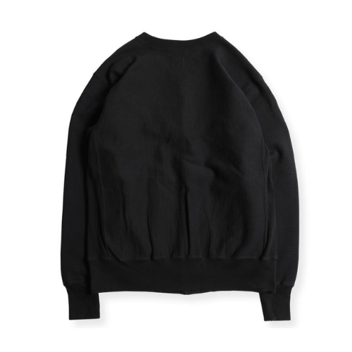 24FWでの一新から一年。既に多くのファンから愛され「ウエストライドのH/Wスウェット」として定着した感のある自信作。表側から順に14番/20番/7番糸を使用した3層のオリジナル生地は、丈夫で着心地も良く保温性にも優れている。また、経年変化による風合いも抜群。60’Sの銘品RWをモチーフとして、シームレスショルダーなどの古き良き前時代的ディテールを盛り込んで製作。カラーは新たなBLACKとオリジナルに極近しい色味で仕上げた杢GREYの2色。共にスタイルやデザインと掛け合わさり新鮮な印象を与える色味です。