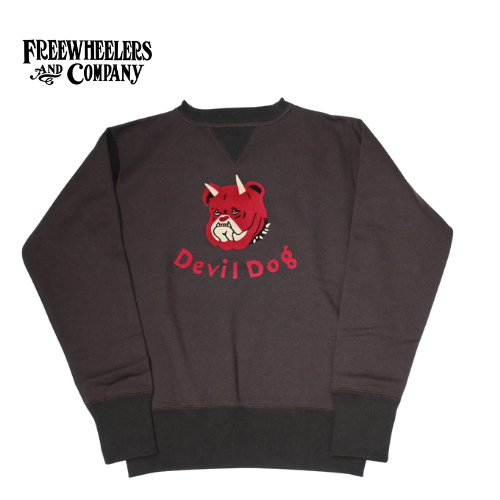 POWER WEAR "Devil Dog" DOUBLE V SWEAT SHIRT SET-IN SLEEVE #2534003 1930~1940s STYLE CHARCOAL BLACK×SOOT BLACK