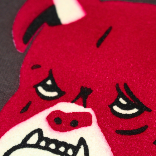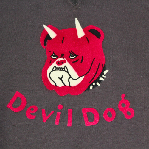 フロントには "両目ありのブルドッグ" "DEVIL DOG" をバランス良く"VINTAGE FROCK PRINT/ヴィンテージフロッキープリント" しております。