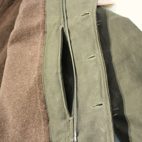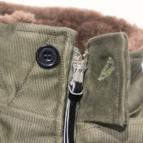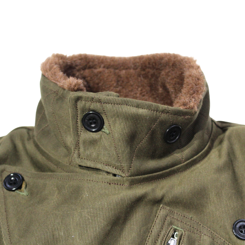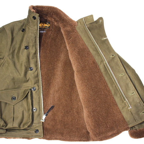 表地のジャングルクロスと裏地のアルパカライニングの間にフリーホイーラーズオリジナルのコットンフランネルを挟んだ3層構造にしており、より保温性と防風性を高めた作りになっています。