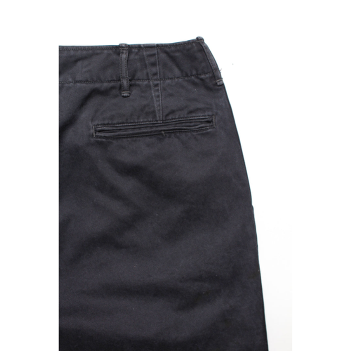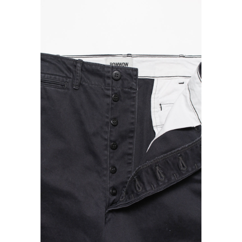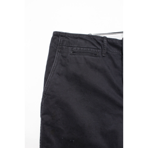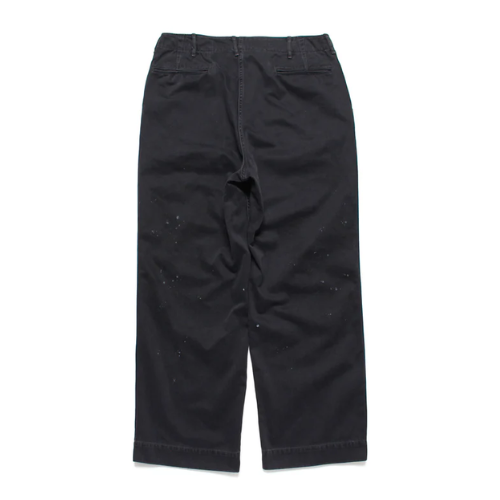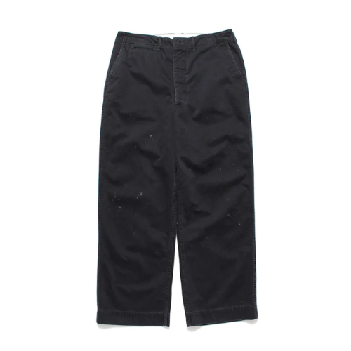 40年代オールドディティール搭載のワークパンツは、ブランドの真骨頂を詰め込んだ一本。ブランドの顔にもなっている水染み加工を用い、待望のブラックチノ生地で製作。