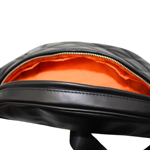 ストラップの調節部分にDカンを配しており、長さ調節がしやすい仕様です。ファスナーの淵や背胴に芯材を入れることで、フォルムを美しく保つよう仕上げました。