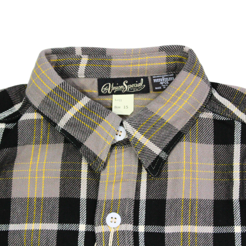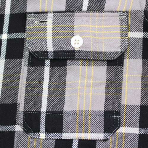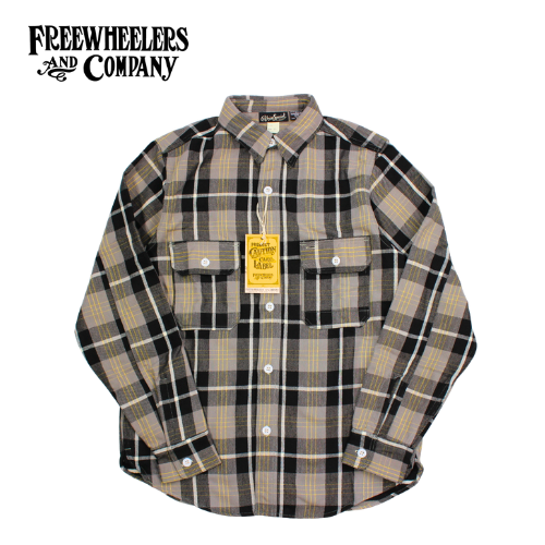 1940~50年代のワークシャツをモチーフとし、フリーホイーラーズ オリジナル "Cotton Flannel Check With a Raised Back" COTTON 100% 差し色にエッグイエローを配した裏起毛ネル生地を採用。