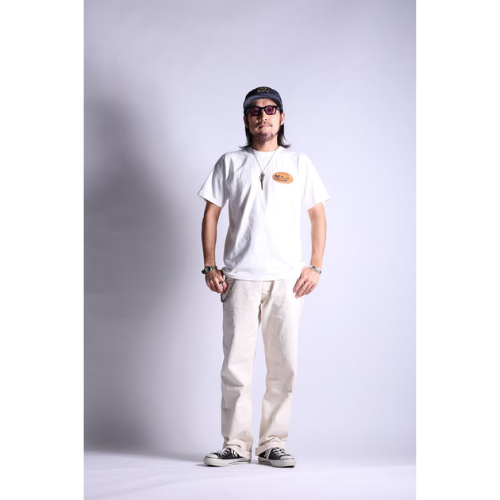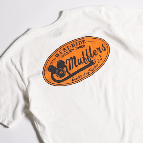 縫製:WESTRIDEのオリジナルTEEは、丸胴の吊り機で編み立てる→サイドを割ってダブルシームで縫製→内側サイドの縫い代をカット→ネックはトリプルバインダー。と非常に手間のかかる仕上げとなっている。この工程により、丸胴に見られるヨジレなどの型崩れもなく、肌触りも良好となる。肌着としての側面も持つTEEだけに、プリント柄だけでなく、品質そのものに拘って生産しています。